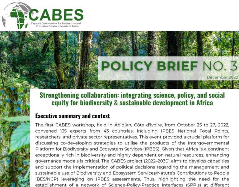 Le programme CABES a organisé son premier atelier régional sur: “Co-développement de stratégies pour la durabilité en Afrique : Utilisation des produits de la Plate-forme Intergouvernementale pour la Biodiversité et l’Environnement (IPBES)” , qui s’est tenu à Abidjan, Côte d’Ivoire, du 25 au 27 Octobre 2022.